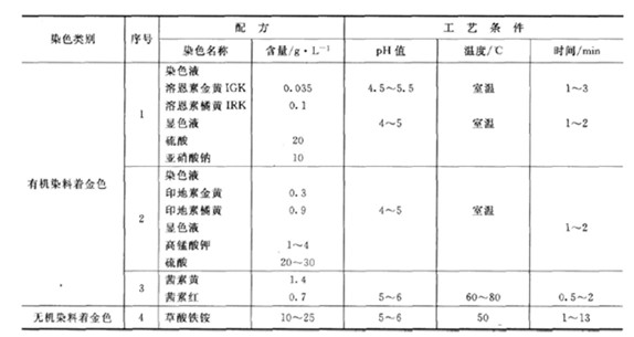 鈍化(三酸鈍化)→水洗→熱水洗→浸水溶性清漆[1:(5~20)]→水洗→晾干或烘干。 (3)仿金涂料工藝 仿金涂料工藝是在光亮白色鍍層上(鎳、銀)噴一層金黃色的透明漆,或在金色電泳涂料中進(jìn)行陰極電泳,從而獲得美觀的金色涂層。 仿金涂料,可采用水性氨基仿金烘漆或聚氨酯仿金漆,也可在氨基清漆、聚氨酯清漆、硝基清漆、醇酸清漆等清漆中加入少量黃色與紅色染料自行配制(用醇溶染料)。不同品種的漆料有不同加工工藝,成本與質(zhì)量也不同,依據(jù)產(chǎn)品要求選用。 對(duì)于非導(dǎo)體,如塑料、玻璃、陶瓷制品,可先進(jìn)行真空蒸鍍鋁或化學(xué)鍍等方式獲得金屬層,再涂裝處理。 (4)鋁合金氧化著色 鋁一般采用硫酸陽(yáng)極氧化后著金色(具體工藝見(jiàn)第7章),金色的染色液常用紅色與黃色調(diào)配,黃色多,紅色少, 鋁氧化著仿金色工藝規(guī)范