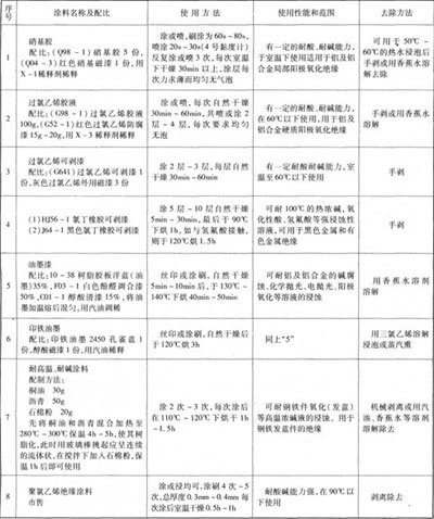 配方l和配方2適于工作溫度在40℃以下的鍍液,用于鍍鋅、鎘、銅、鎳、銀、鉛錫合金等,以及室溫或低溫陽極氧化的零件絕緣。配方3適用于工作溫度在40℃~60℃的鍍鉻以及用草酸、硫酸進行普通和硬質(zhì)陽極氧化零件的絕緣。