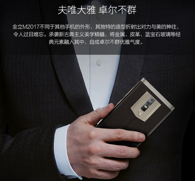 在產(chǎn)品布局上,金立從沒跳入低價競爭的泥潭,反而一直在布局中端和高端市場,特別是最高端的商務(wù)市場。2017年即將到來之際,金立M2017發(fā)布,獲著名導演馮小剛和夫人徐帆攜手代言,再一次拔高了我們對這款高端商務(wù)旗艦的期待。